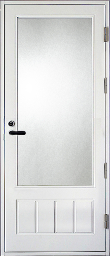 Ovilevy | EPS-lämpöeristetty 62 mm vahva ovilehti. Ovilevyn reunalla liimapuun ja kertopuun yhdistelmä sekä molemmat oven pinnat on alumiinilevyin vahvistettu. Oven pinta säänkestävä HDF-pinta valkoinen NCS S 0502-Y. Ulkopuolella urakuviointi ja sisäpuolelta sileä.