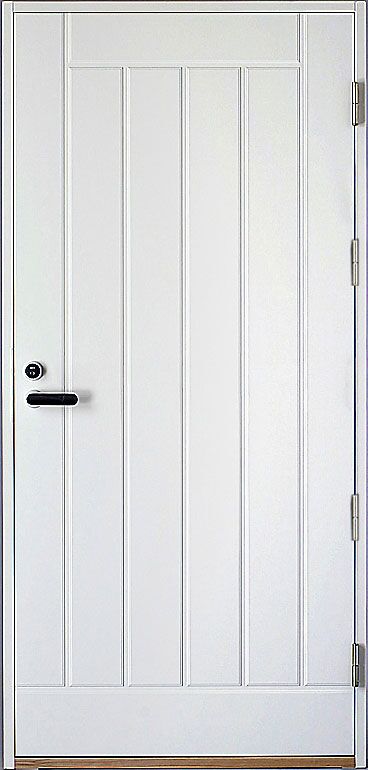 Ovilevy | EPS-lämpöeristetty 86 mm vahva ovilehti. Ovilevyn reunalla liimapuun ja kertopuun yhdistelmä sekä molemmat oven pinnat on alumiinilevyin vahvistettu. Oven pinta säänkestävä HDF-pinta valkoinen NCS S 0502-Y. Ulkopuolella urakuviointi ja sisäpuolelta sileä.