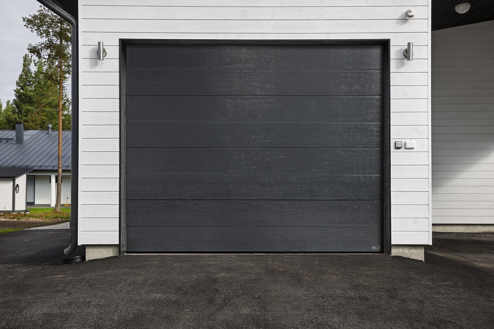 Turner 820: Leveä vaakaurallinen grafiitinharmaa RAL 7024 nosto-ovi.